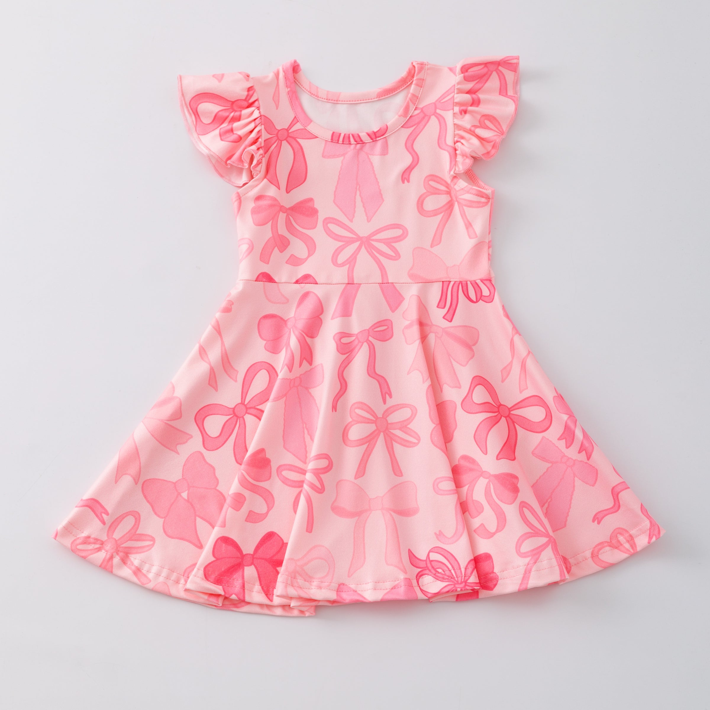 BACK TO SCHOOL PINK BOW PENCIL RUFFLE DRESS