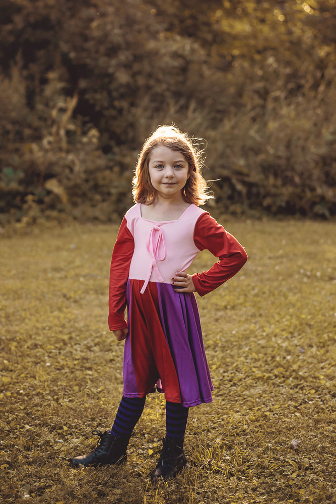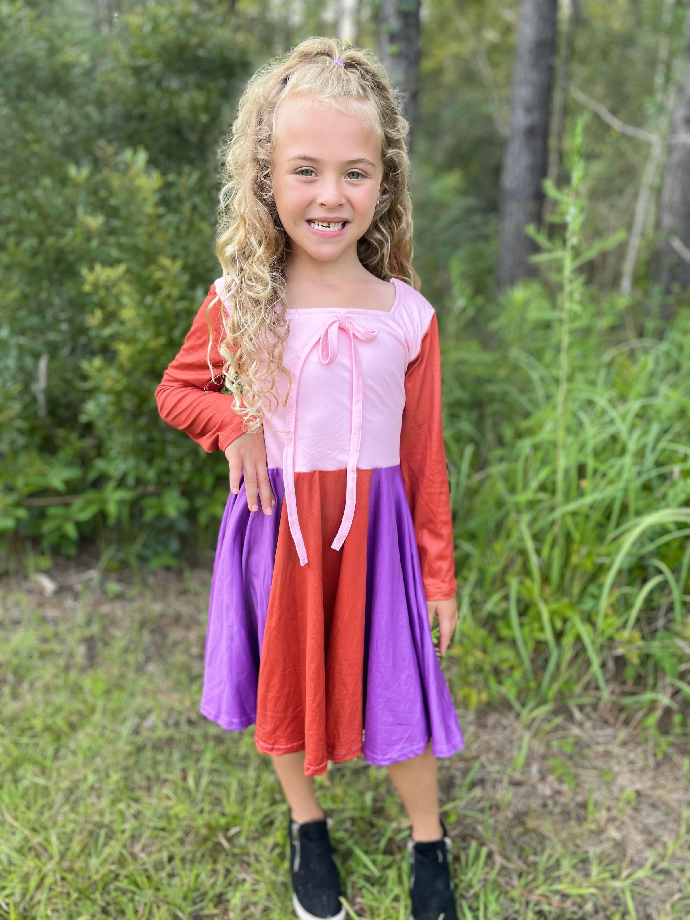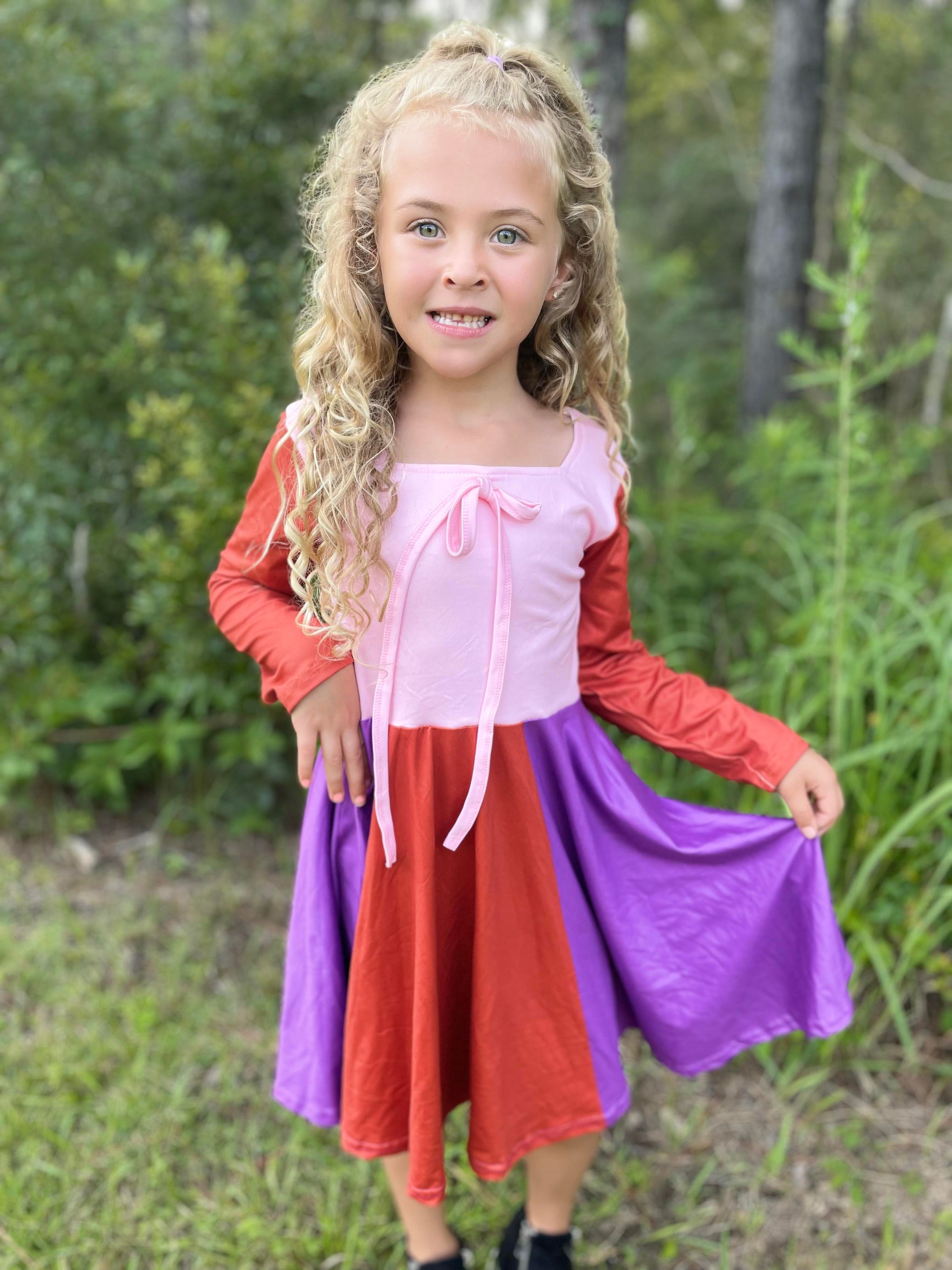 WITCH SISTER TWIRLY LONG SLEEVES DRESS PURPLE/GREEN - HC2025