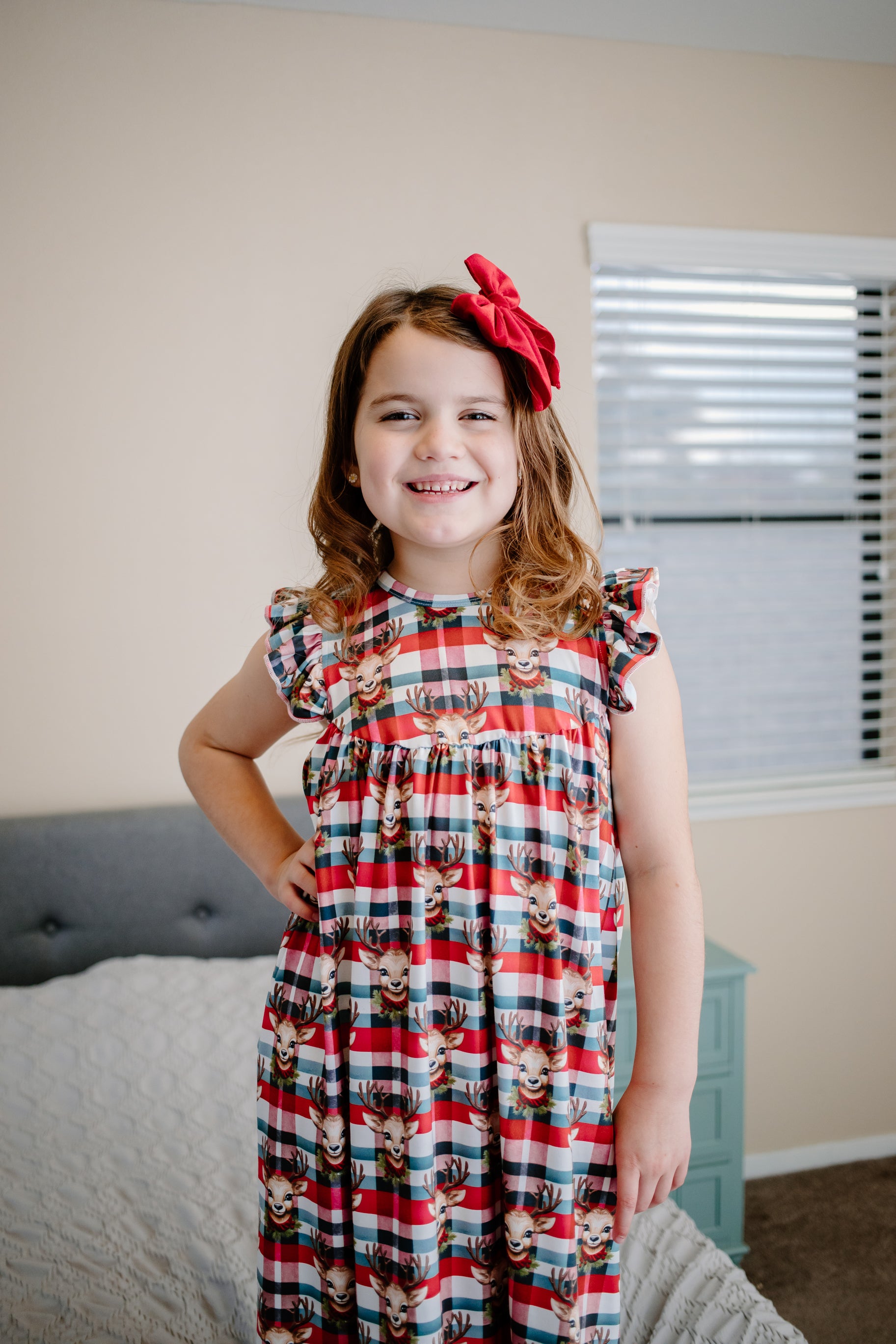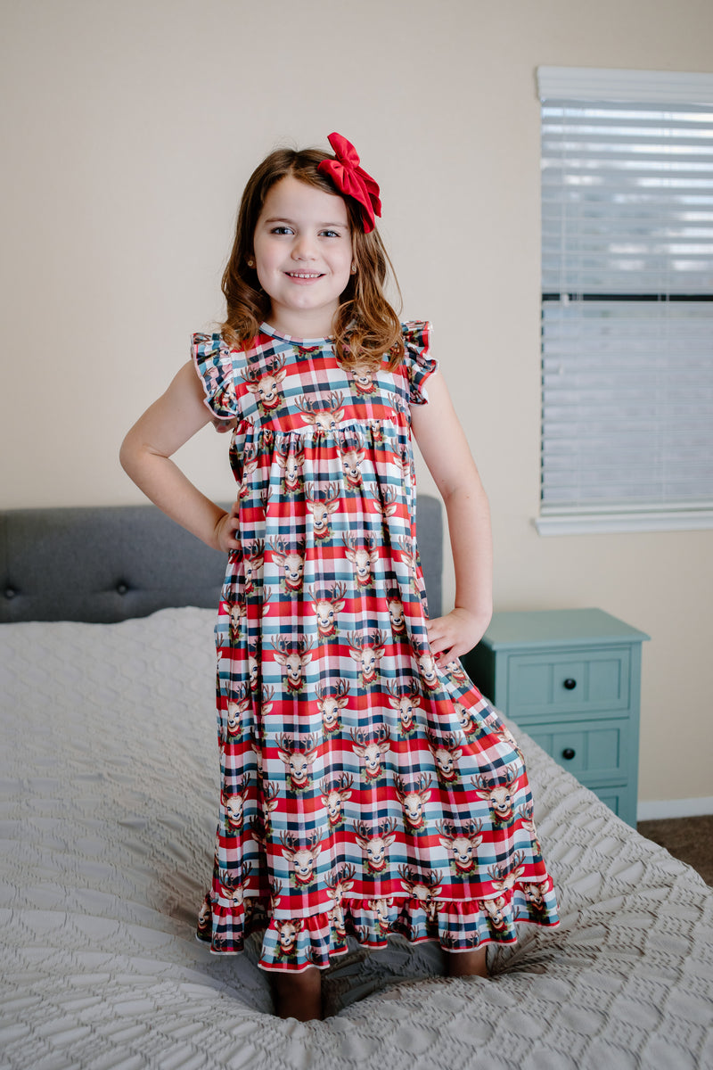REINDEER FLUTTER SLEEVES PLAID NIGHTGOWN - Nightwear2025